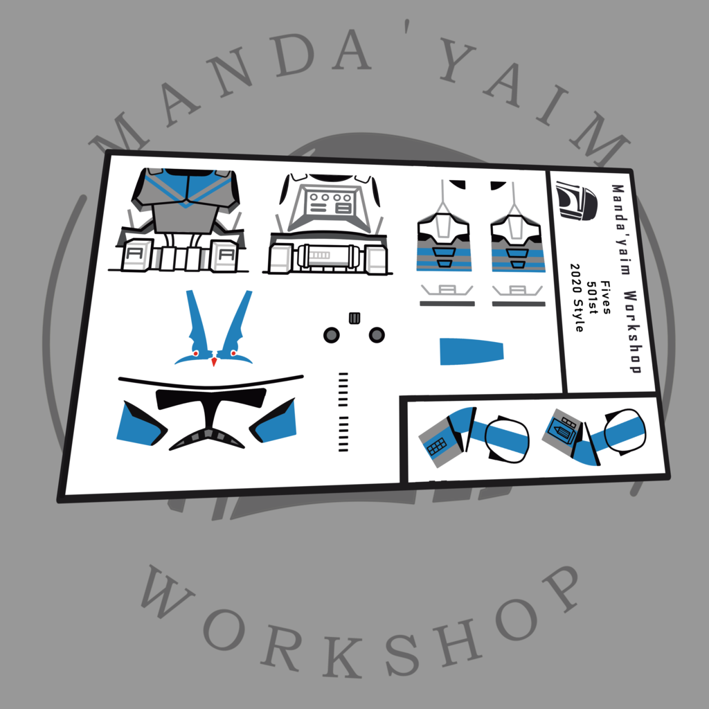Kalkomanie zaprojektowane i wyprodukowane przez Manda'yaim Workshop. Przeznaczony do nałożenia na korpus minifigurki Lego i replikę/oficjalny hełm fazy 2.