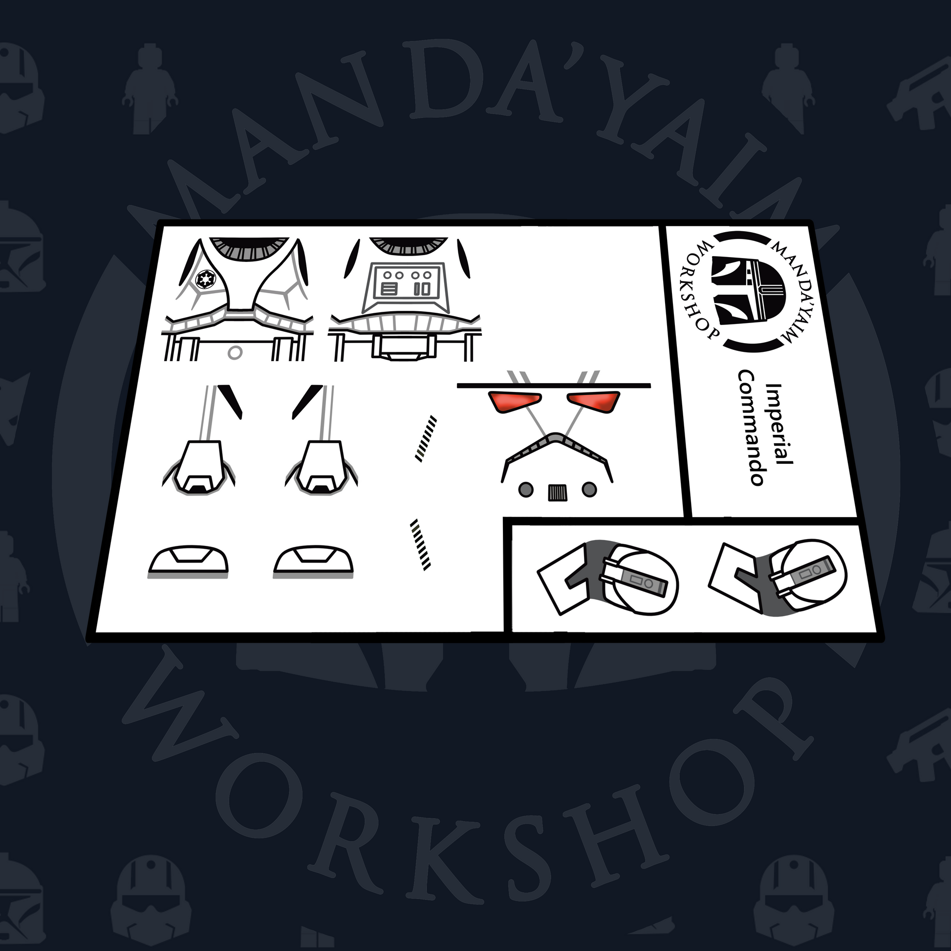 Decals designed and manufactured by Manda'yaim Workshop. Made to be applyed on Lego minifigure body and Manda'yaim Workshop helmet.