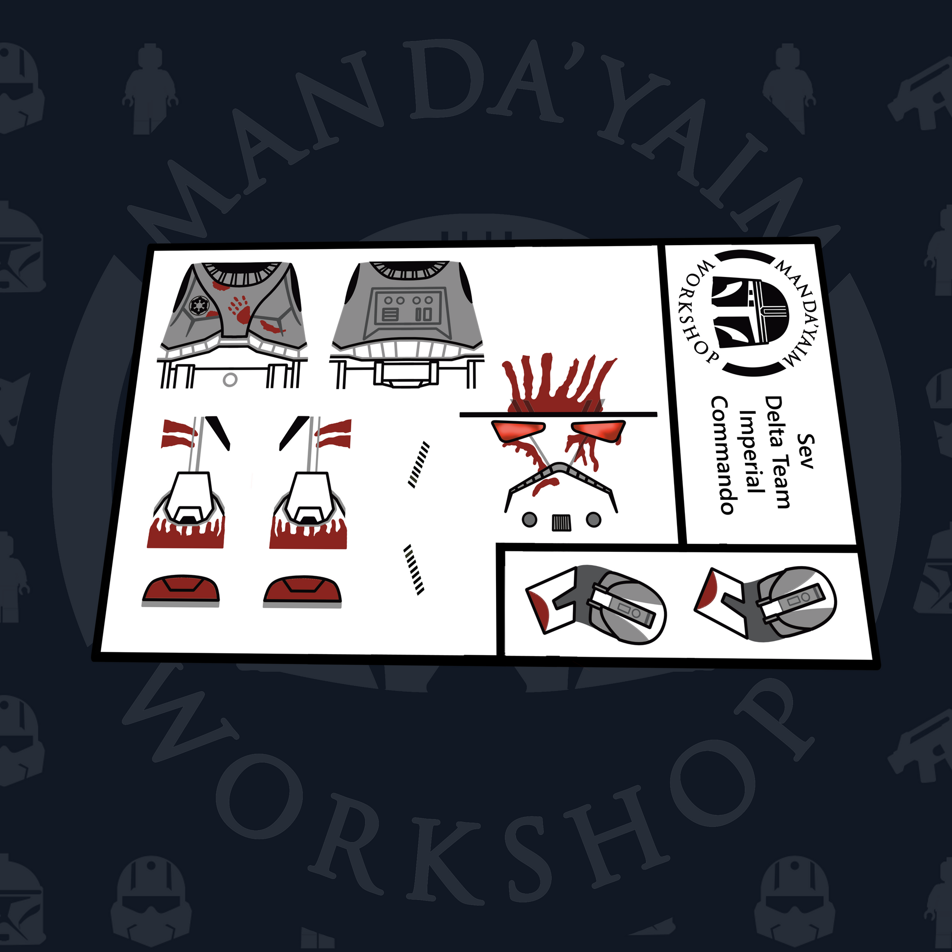 Decals designed and manufactured by Manda'yaim Workshop. Made to be applyed on Lego minifigure body and Manda'yaim Workshop helmet.