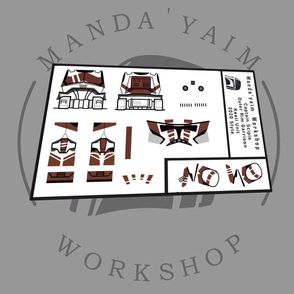 Decals designed and manufactured by Manda'yaim Workshop. Made to be applyed on Lego minifigure body and replica/official Phase 2 helmet.