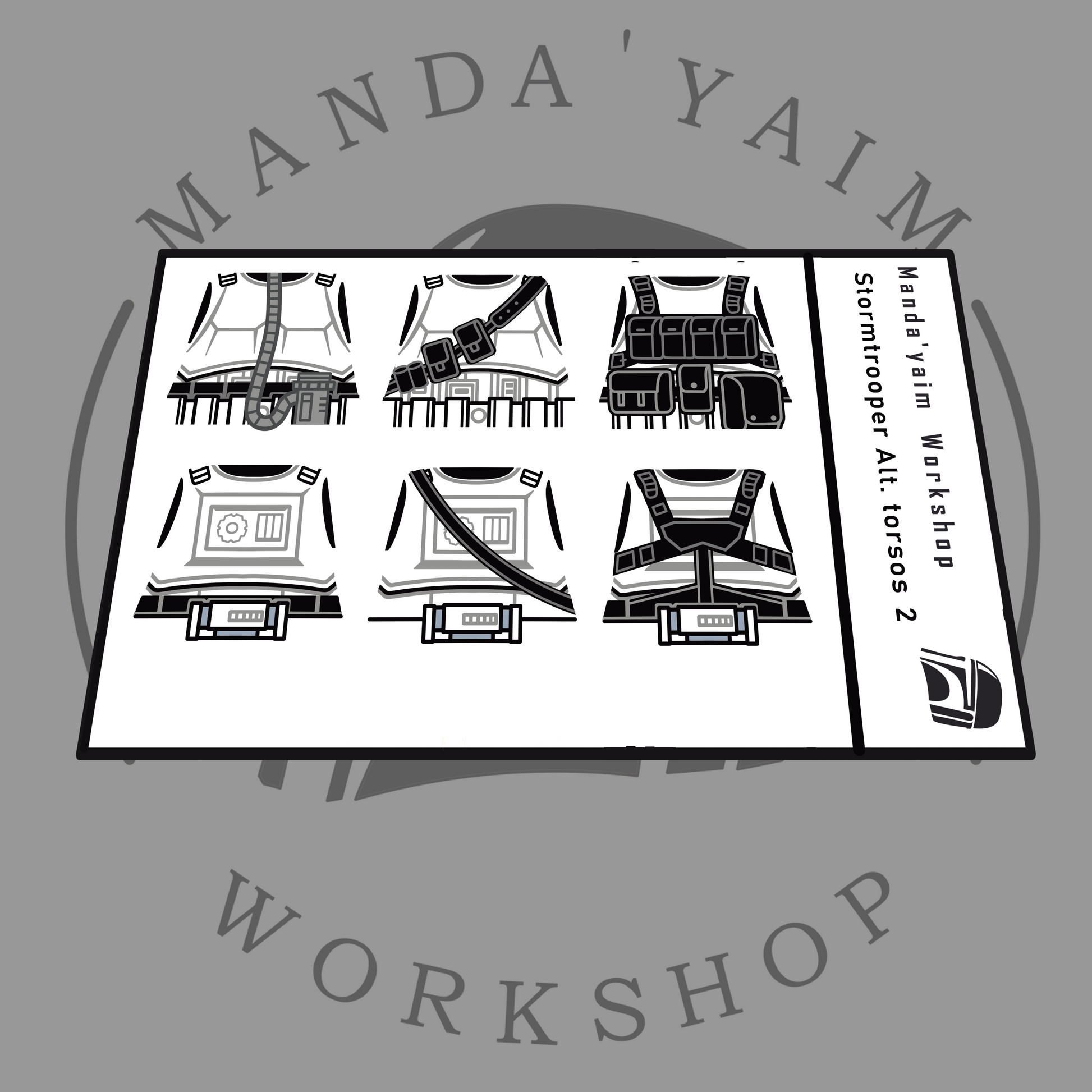 Decals designed and manufactured by Manda'yaim Workshop. Made to be applyed on Lego minifigure body and Stormtrooper helmet.