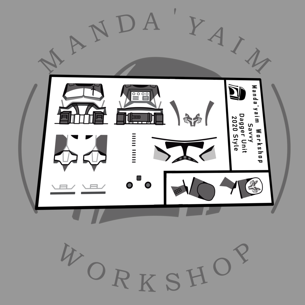 Decals designed and manufactured by Manda'yaim Workshop in colaboration with Savvy. Made to be applyed on Lego minifigure body and replica/official Phase 2 helmet.