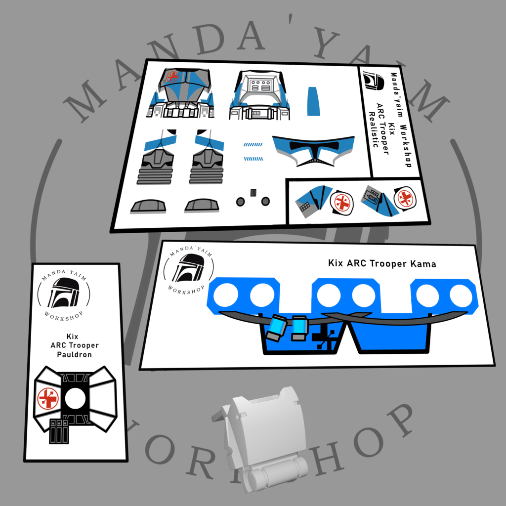 Decals designed and manufactured by Manda'yaim Workshop. Made to be applyed on Lego minifigure body and replica/official Phase 2 helmet.