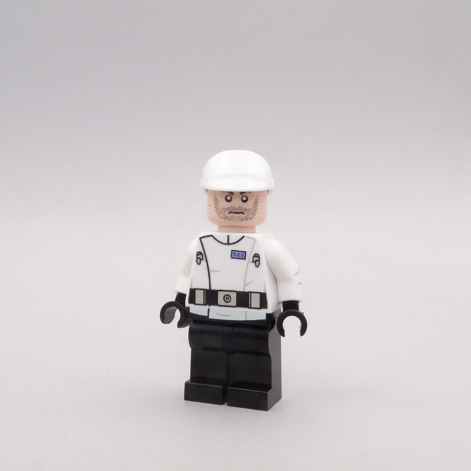 Minifigure UV printed on original body with decaled replica helmet.